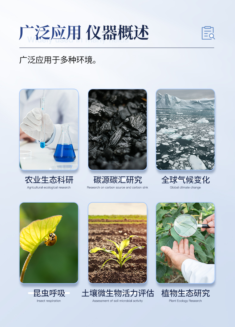 | 土壤呼吸是土壤生態系統碳素循環的一個重要過程,是土壤碳素同化異化平衡作用的結果,也是碳素由陸地生態系統返回大氣的主要途徑,是土壤中生命活動的表征,準確測定其釋放量是評價生態系統中生物學過程的關鍵;通過對土壤呼吸及其相關參數的監測,可估測根系和土壤微生物對氣候變化的響應。土壤CO2通量在時間和空間上受多種復雜物理和生物過程影響,長期、連續、準確的測量土壤碳通量,對陸地生態系統碳通量研究具有重要的意義。土壤呼吸測定儀可以同時顯示呼吸室內部的CO2濃度、溫度和濕度變化以及外部光合有效輻射強度。廣泛應用于農業生態科研、碳源碳匯研究、全球氣候變化、土地利用方式改變、生態修復研究、土壤微生物活力評估、植物生態研究、昆蟲呼吸、根系呼吸以及水果貯藏。 |