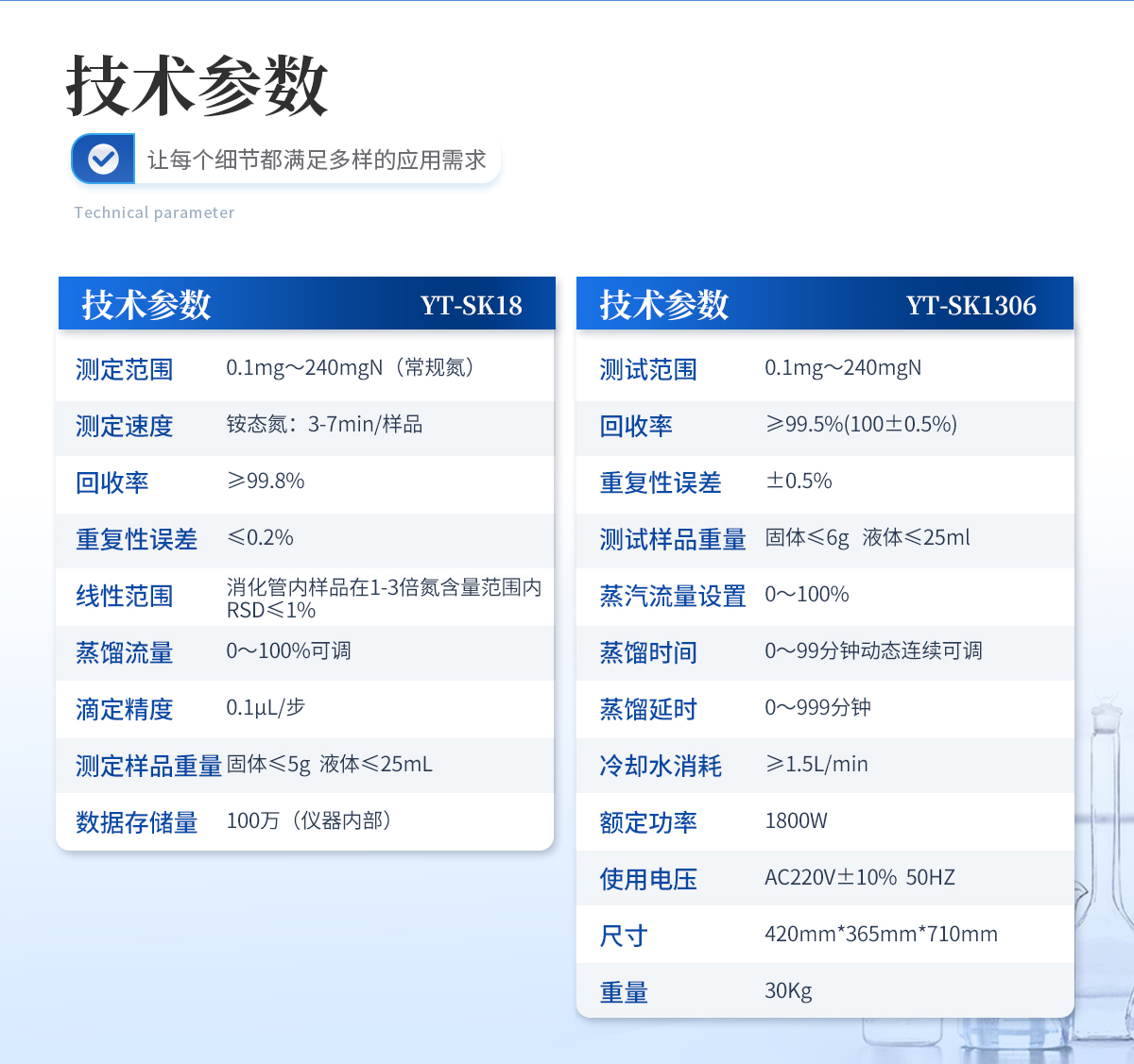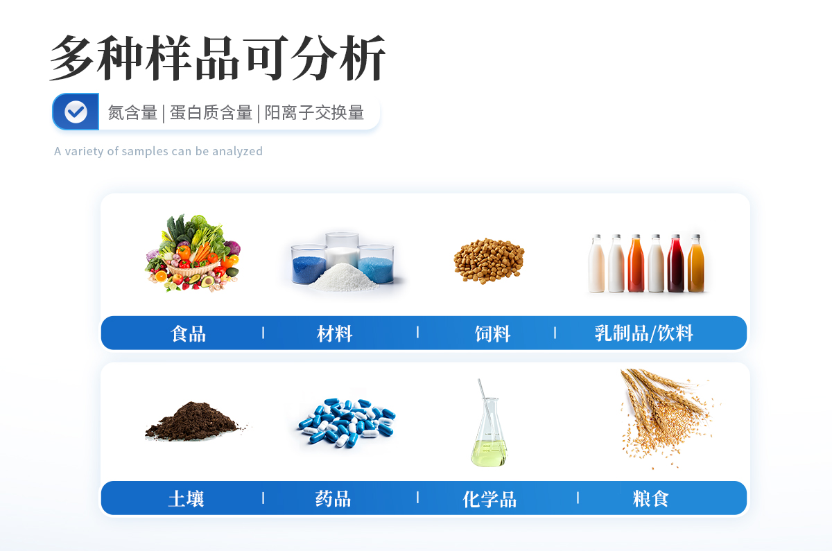 用于檢測食品、藥品、土壤、化工、農業、林業、材料、環境監測等領域氮含量或蛋白質含量測定、陽離子交換量測定。