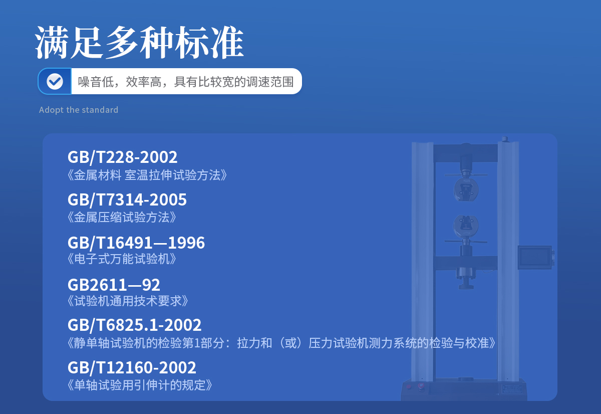 微機控制電子萬能試驗機是專門針對高等院校、科研院所而設計的新一代微機控制電子萬能試驗機。計算機系統通過全數字控制器,經調速系統控制伺服電機轉動,經減速系統減速后通過精密滾珠絲杠副帶動移動橫梁上升、下降,完成試樣的拉伸、壓縮、彎曲、剪切等多種力學性能試驗,另外配置種類繁多的試驗附具,在金屬、非金屬、復合材料及制品的力學性能試驗方面,具有非常廣闊的應用前景。該機廣泛應用于建筑建材、航空航天、機械制造、電線電纜、橡膠塑料、紡織、家電等行業的材料檢驗分析,是科研院校、大專院校、工礦企業、技術監督、商檢仲裁等部門的理想測試設備。滿足國家標準GB/T228-2002《金屬材料 室溫拉伸試驗方法》、GB/T7314-2005《金屬壓縮試驗方法》GB/T16491—1996《電子式萬能試驗機》;GB2611—92《試驗機通用技術要求》;GB/T6825.1-2002《靜單軸試驗機的檢驗第1部分:拉力和(或)壓力試驗機測力系統的檢驗與校準》。GB/T12160-2002《單軸試驗用引伸計的規定》的要求,符合GB、ISO、ASTM、DIN等多種標準的數據處理。可以符合用戶的要求及提供的標準。