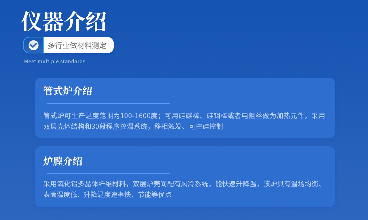 | 1、爐膛采用優(yōu)質(zhì)氧化鋁纖維材料,保溫性能好,耐用,拉伸強(qiáng)度高,無雜球,純度高,節(jié)能效果明顯; | 2、加熱元件采用優(yōu)質(zhì)HRE電阻絲,大大提高了其使用壽命; | 3、超溫報(bào)警,漏電保護(hù),操作安全可靠。 |
