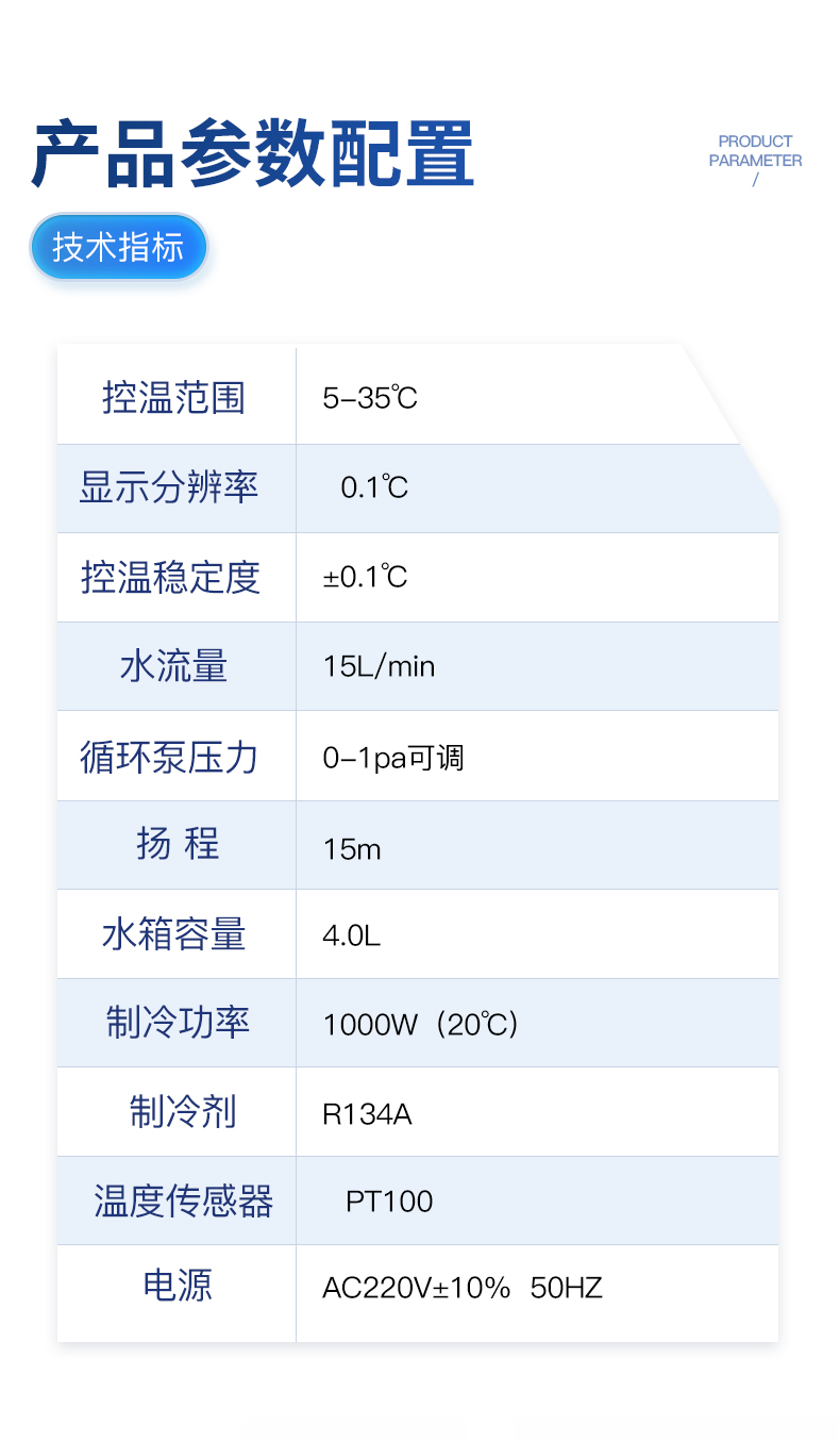 | 電壓:220V AC | 頻率:50HZ | 工作電流:3.2-8.6A | 壓縮機功率:1050W/1.2HP | 制冷量:3KW±5% | 冷媒充注量:R410a/480g | 節(jié)流器:毛細管 | **揚程:15m | **流量:12L/min | 水泵功率:55瓦 | 出水口:φ10銅咀寶塔(默認(rèn)) | 水箱容量:9L | 尺寸:長*寬*高740*480*840mm | 凈重:65Kg | 保護:水流保護、水溫超高報警、水溫超低報警、壓縮機過載保護、室溫超高報警 |
