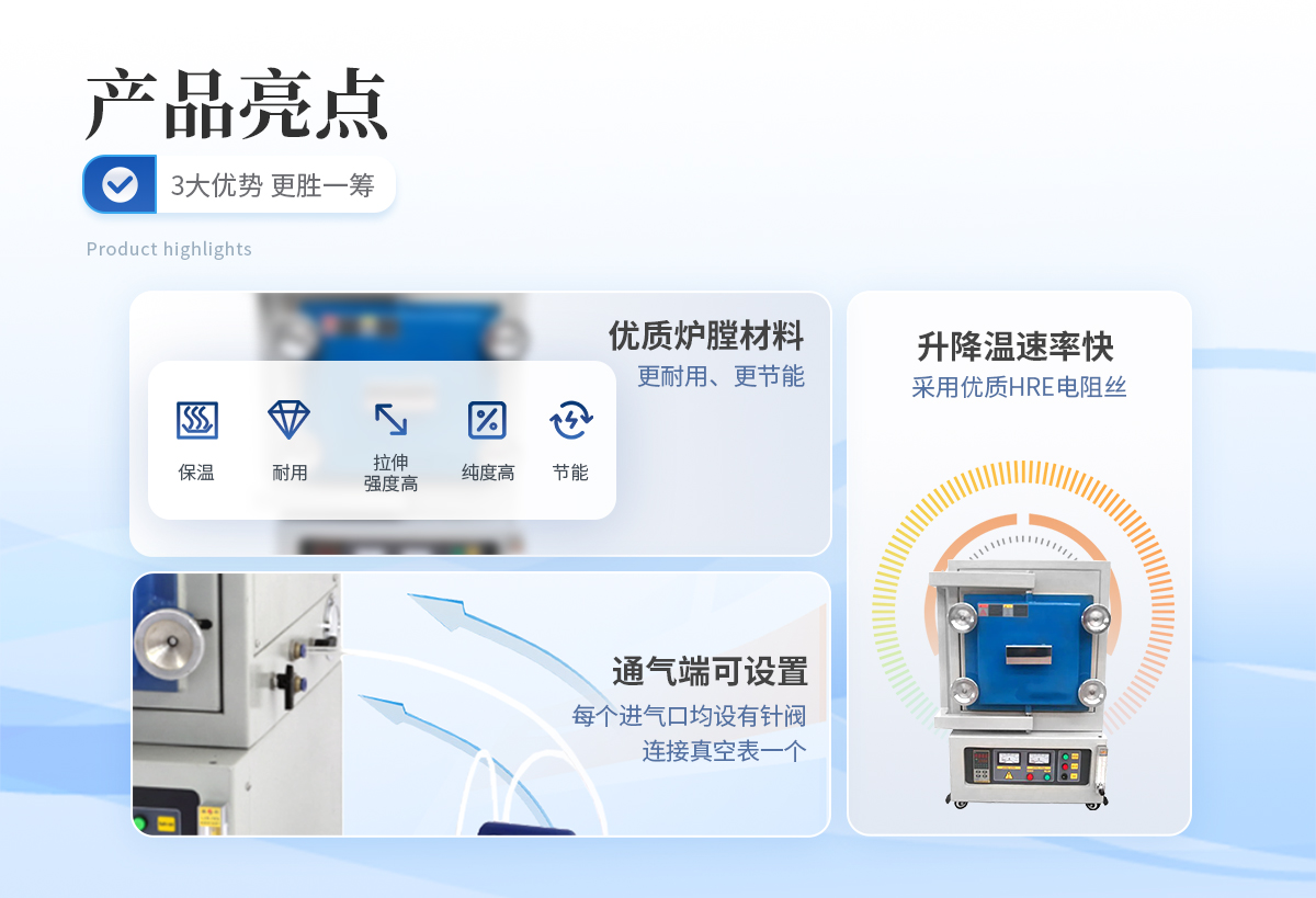 用于高校、科研院所、工礦企業(yè)做高溫氣氛燒結(jié)、氣氛還原、CVD實驗、真空退火等。具有溫場均勻、升降溫速率快、節(jié)能、可通入多重氣體等特點。