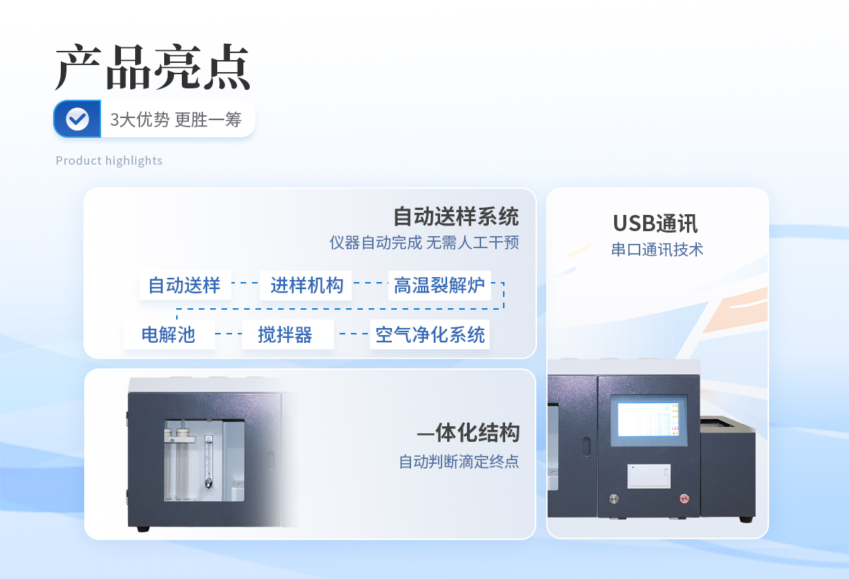| 1、 手自一體化自動(dòng)送樣系統(tǒng),將自動(dòng)送樣、進(jìn)樣機(jī)構(gòu)、高溫裂解爐、電解池、攪拌器、空氣凈化系統(tǒng)等部件巧妙地結(jié)合在一起,使儀器結(jié)構(gòu)更加緊湊,更加合理、更加穩(wěn)定。可在線式插隊(duì)添加樣品,無需人工送樣,自動(dòng)化程度高,若樣品少也可采用手動(dòng)送樣方式。 | 2、采用—體化結(jié)構(gòu),自動(dòng)判斷滴定終點(diǎn),縮短了實(shí)驗(yàn)時(shí)間。所有關(guān)鍵部件均采用了設(shè)計(jì)理念及進(jìn)行了嚴(yán)格的控制,確保儀器能長(zhǎng)時(shí)間穩(wěn)定運(yùn)行。 | 3、采用特別的數(shù)據(jù)采集網(wǎng)絡(luò)及多級(jí)校正技術(shù),確保高、中、低硫含量測(cè)試結(jié)果的準(zhǔn)確性。 | 4、送樣機(jī)構(gòu)采用電子電解液分子濃度采集電路,可靠性高,不會(huì)產(chǎn)生過電解現(xiàn)象。 | 5、串口通訊技術(shù),可采用usb通訊,兼容性好,具有廣泛的適用性。 | 6、自由設(shè)置送樣時(shí)間及預(yù)置溫度,采用進(jìn)口霍爾元件控制送樣位置。 | 7、采用剛玉瓷舟,減少卡樣的可能。一次可放1-24個(gè)樣由程序控制實(shí)現(xiàn)自動(dòng)升溫、控溫、送樣、測(cè)定,結(jié)果自動(dòng)存盤、自動(dòng)打印,并可中途在線式插隊(duì)添加試樣,大大地提高了工作效率,真正實(shí)現(xiàn)無人值守; | 8、采用庫侖滴定法進(jìn)行測(cè)定,測(cè)定時(shí)間可根據(jù)不同試樣自動(dòng)判斷,速度優(yōu)于艾士卡重量分析法和高溫燃燒中和法; |