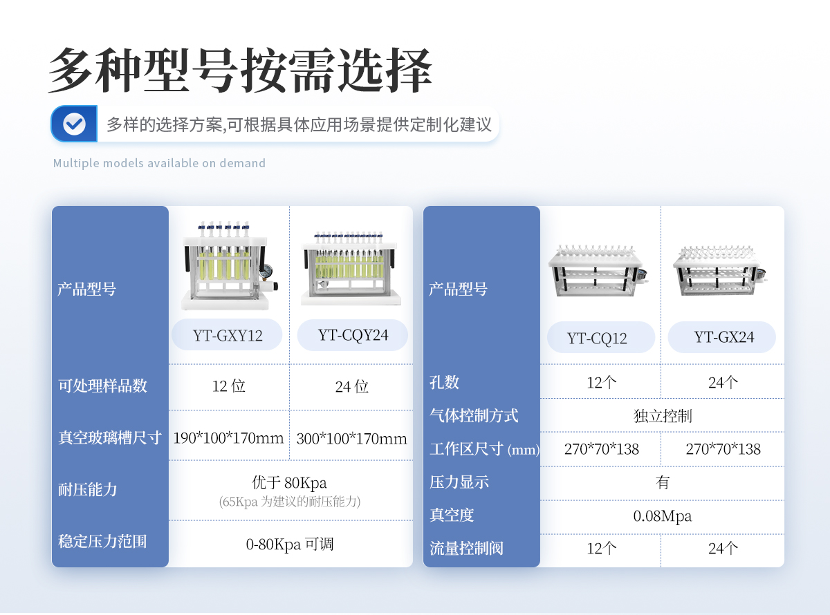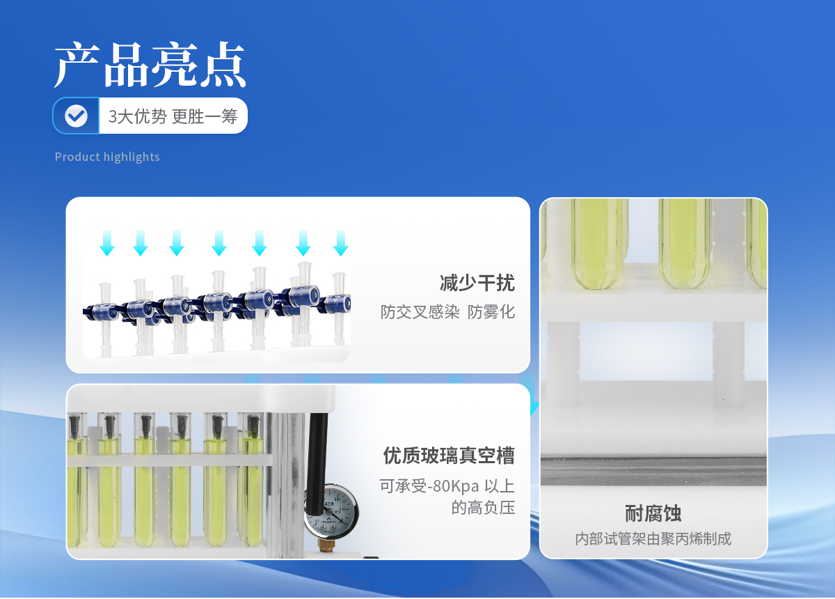 | 可處理樣品數:12 位 | 真空玻璃槽尺寸:190*100*170mm | 耐壓能力:優于 80Kpa(65Kpa 是我們建議的耐壓能力) | 穩定壓力范圍:0-80Kpa 可調 | 配套試管架尺寸:?13/ ?16,長度 145mm 以下。 |