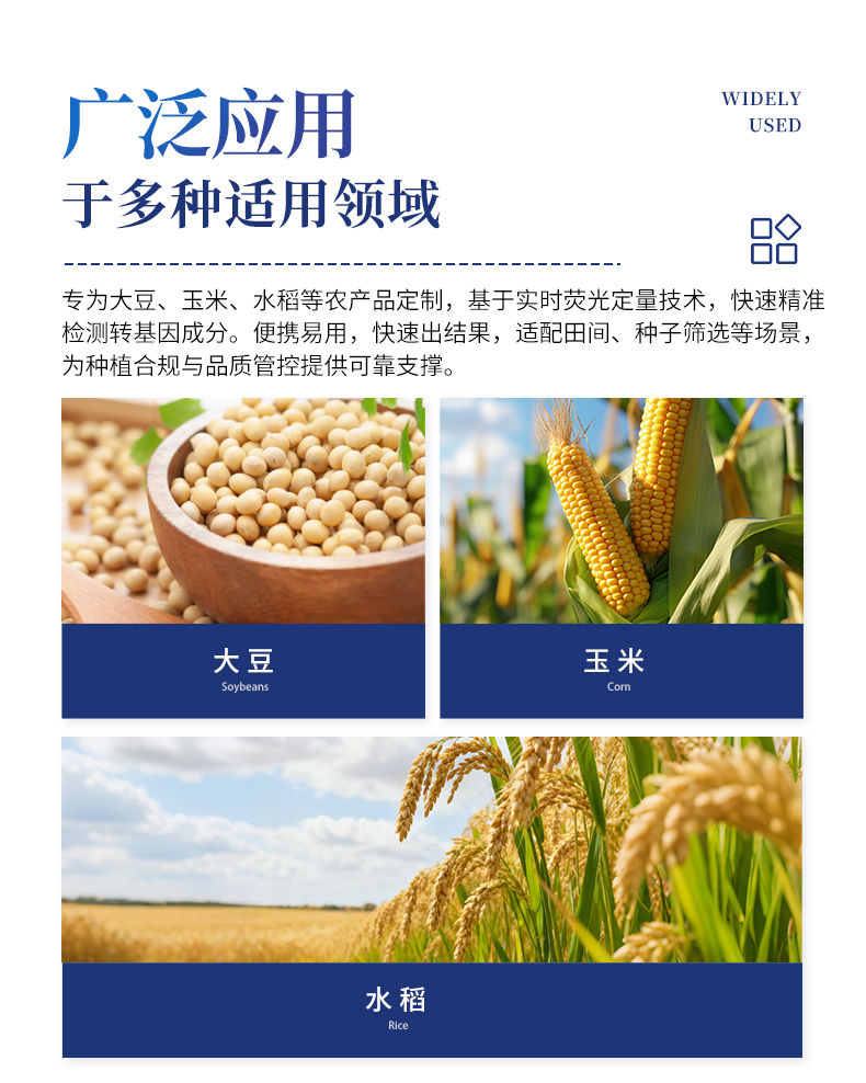 本款轉(zhuǎn)基因PCR檢測儀專為大豆、玉米、水稻等農(nóng)產(chǎn)品定制,基于實(shí)時(shí)熒光定量技術(shù),快速精準(zhǔn)檢測轉(zhuǎn)基因成分。便攜易用,快速出結(jié)果,適配田間、種子篩選等場景,為種植合規(guī)與品質(zhì)管控提供可靠支撐。