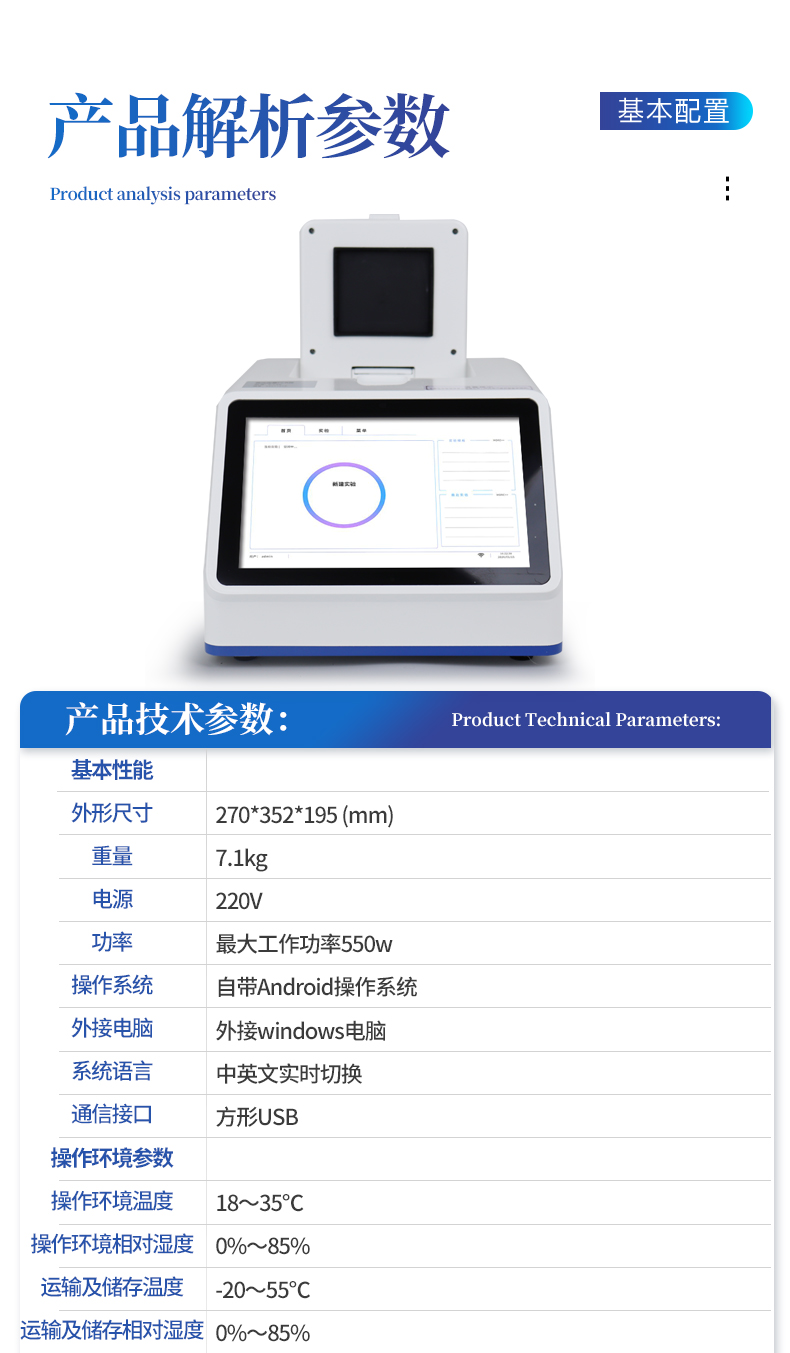 產(chǎn)品描述:產(chǎn)品簡介: 本款轉(zhuǎn)基因PCR檢測儀專為大豆、玉米、水稻等農(nóng)產(chǎn)品定制,基于實(shí)時(shí)熒光定量技術(shù),快速精準(zhǔn)檢測轉(zhuǎn)基因成分。便攜易用,快速出結(jié)果,適配田間、種子篩選等場景,為種植合規(guī)與品質(zhì)管控提供可靠支撐。 系統(tǒng)組成: 轉(zhuǎn)基因檢測儀由四通道16孔熒光定量pcr儀、便攜式配件箱組成。【詳情】  更新時(shí)間:2026-03-31