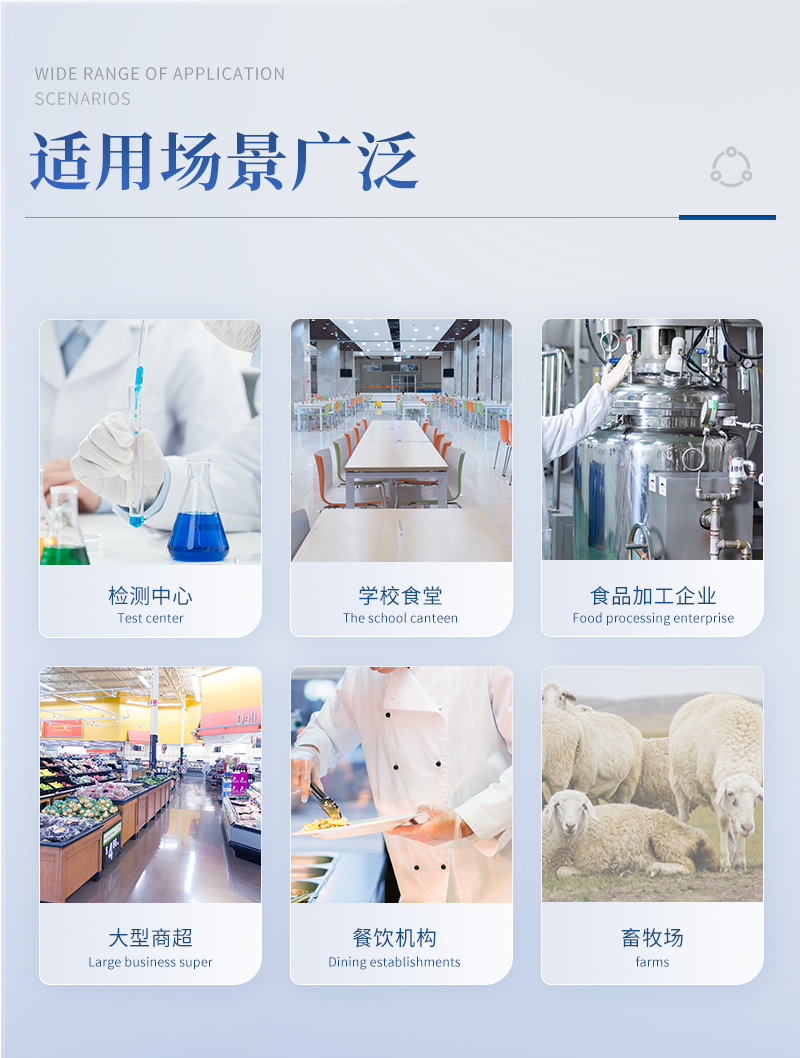 | 儀器采用手提一體化系統檢測技術,將分光光度模塊、數字化管理模塊、無線通訊模塊高度集成于一體,可支持檢測60種食品安全檢測項目,同時預留升級檢測方法。 | 儀器檢測模塊標準化、智能化,檢測項目可隨意自由組合。檢測箱體內置多個標準檢測單元,檢測模塊可以調整配置。 | 顯示屏幕:儀器采用10.1英寸豎向液晶觸摸屏顯,搭配運行安卓智能操作系統,主控芯片采用ARM Cortex-A7,RK3288/4核處理器,主頻1.88Ghz,操作方便,性能更強。 | 檢測通道:≥12通道;采用精密旋轉比色池設計,使用同芯片同光源校準精度,解決不同光源之間的誤差值,更加準確**。(1-12通道間誤差0.1%,***:**202022821055.2) | 儀器光源:高精度進口四波長冷光源,每個通道均配置 410、520、590、630nm 波長光源,標配**的光路切換裝置,專利光路切換功能可實現64波長,并且所有檢測項目可實現所有通道同時檢測。 | 設備可一鍵校準,自動保存校準數據,自動對比校驗,得到精準光源,采用Android SP存儲數據,光源數據永不丟失,方便每一次使用。 | 通訊接口: 配備無線通信模塊、4G(APN)通訊模塊、藍牙傳輸,同時具有雙USB接口以及RJ45網線接口,可以多方式實現數據保存及數據傳輸。 | 存儲方式: 存儲方式:支持U盤存儲,標準USB接口,免驅動安裝。檢測結果存儲容量20萬條以上,可生成Excel表格進行拷貝,并具有登錄保護功能。 | 智能化操作系統: | 操作系統:儀器可在同一檢測界面自動對應相關檢測通道,一次性選擇1-12個樣品名稱,無需退出界面,節省操作時間。并可以對每個通道屬性和樣品信息單獨進行編輯,例如送檢單位、人員,檢測人員等,打印時勾選打印顯示。 | 數據集成系統:設備首頁自動匯總分析檢測數據,包含:周檢測數據、月檢測數據,全部檢測總數量,包含檢測總數,合格數,不合格數,以及相關柱形分析圖,各項檢測數據一目了然,無需電腦查詢,更加快捷直觀。 | 數據庫系統:十幾項數據庫分類管理儀器:包含項目類型、項目數據、檢測數據、歷史記錄、國標信息、曲線信息、采樣信息、檢測信息、受檢信息、復核信息、圖表信息、光源校準信息、打印樣式信息、樣品庫信息等等,數據庫之間互相協調聯動保證數據的真實完整性。同時產品數據庫以及歷史檢測記錄支持一鍵檢索功能。 | 限量規判系統:具有限量查詢、添加物質合規判定系統。檢測出結果后,系統自動調用系統數據庫中相關國標進行比對判定,客觀顯示判定結果是否合格。 | 項目預設系統:儀器具有任務預設模塊,一鍵提前預設,給出方便快捷的新檢測方案,每一個任務分別可以設置不同的樣品、批次、編號、來源、備注、抽樣信息、檢測信息、受檢信息、復核信息等更多信息。樣品送檢時一鍵調取保存信息,并可多次調取,大大提高檢測效率。 | 數據監管系統:同步對接監管平臺,數據可局域網和互聯網數據上傳,檢測結果可直接傳至食品安全監管平臺。進行區域食品安全監管及大數據分析處理與數據統計,監測區域食品安全長短期動態及問題預估、預警。 | 全新打印系統:內置全新打印機,新創自定義打印方式,可按需靈活勾選控制:二維碼,抽樣信息、檢測信息,受檢信息、復核信息、抽樣日期、檢測日期等信息的打印。 | A4紙版本報告打印功能(可選配):設備擁有兩種結果展示方式,可以自動生成A4打印模板和小票打印模板兩種樣式,可通過WiFi及網線等方式鏈接外置打印機可進行打印。 | 供電模式:儀器交直流兩用,直流12V供電,可連接車載電源,可配6ah大容量充電鋰電池,電量可實時顯示,方便戶外流動測試。 | 儀器具備遠程升級功能,可定向分客戶分儀器更新,開機后自動更新,并可持續性免費更新系統版本,無需像傳統產品返廠更新,節省時間及人力成本并避免了物流運輸返廠升級導致設備損壞的潛在風險。 |
