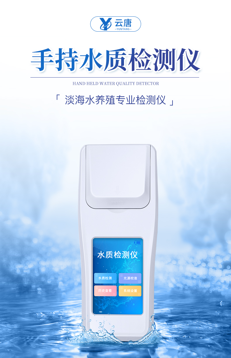 產品描述:設備簡介: 云唐科技YT-S11水產養殖水質檢測儀是一款適用于工業污水、水產養殖、河流監測、游泳場館等領域的檢測儀,配合快速顯色檢測試劑,可“快速、簡單、準確、穩定”進行測量,擁有精美的外觀造型,簡單的操作界面,準確的檢測系統,水產養殖水質檢測儀幫助用戶獲得精細的數據,可更準確、有效的分析【詳情】  更新時間:2026-04-08