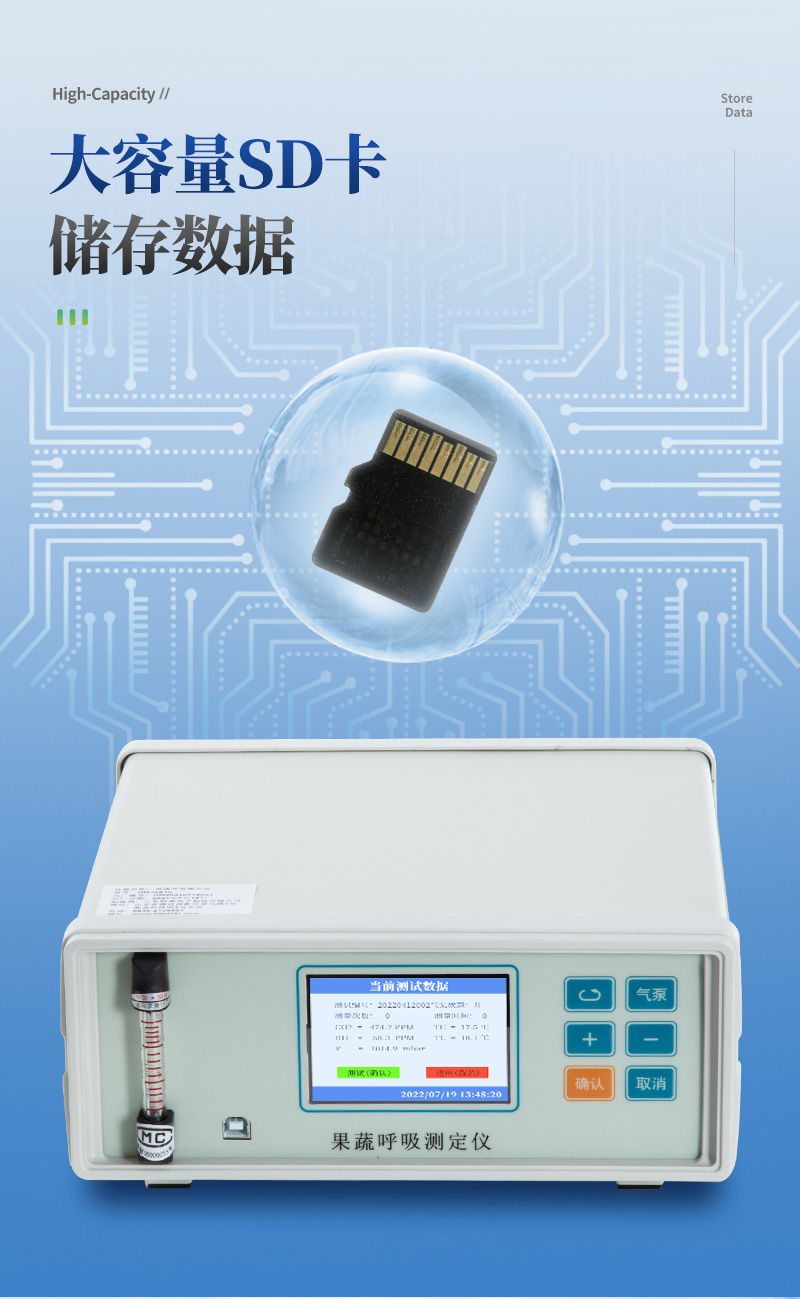 果蔬呼吸測定儀專門用于常溫、冷藏庫、氣調庫、超市冷柜等儲藏條件下的果品和蔬菜呼吸強度的測定和分析研究。該儀器的特點是可以根據果蔬的 大小來選擇不同體積的呼吸室,加快了平衡和測定時間;可以同時顯示呼吸室的CO2濃度、O2濃度、溫度和濕度。該儀器具有多功能、高精度、快速、**、方 便等特點,非常適合于食品,園藝、果品、蔬菜、外貿等各類學校、科研院所用于各類果品和蔬菜的呼吸測定。