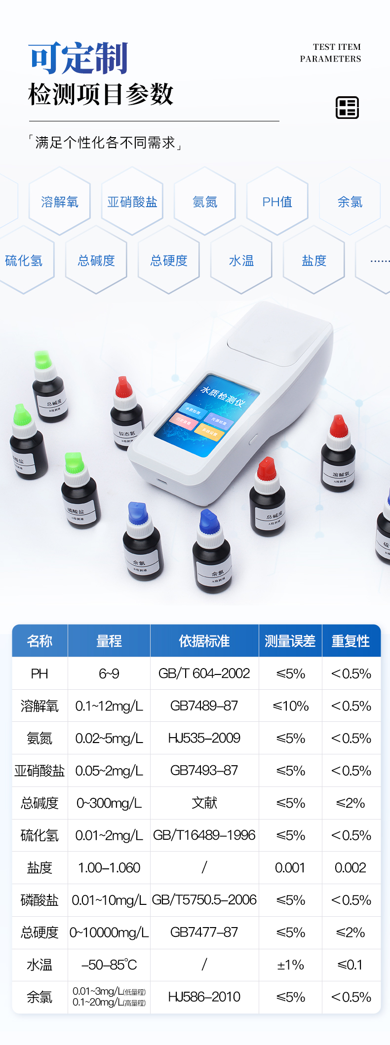 適用于純凈水廠、自來水廠、生活污水處理廠、醫(yī)療廢水、工業(yè)污水、水產(chǎn)養(yǎng)殖、河流監(jiān)測、游泳場館、水源保護(hù)、生產(chǎn)監(jiān)測、科研實(shí)驗(yàn)等。