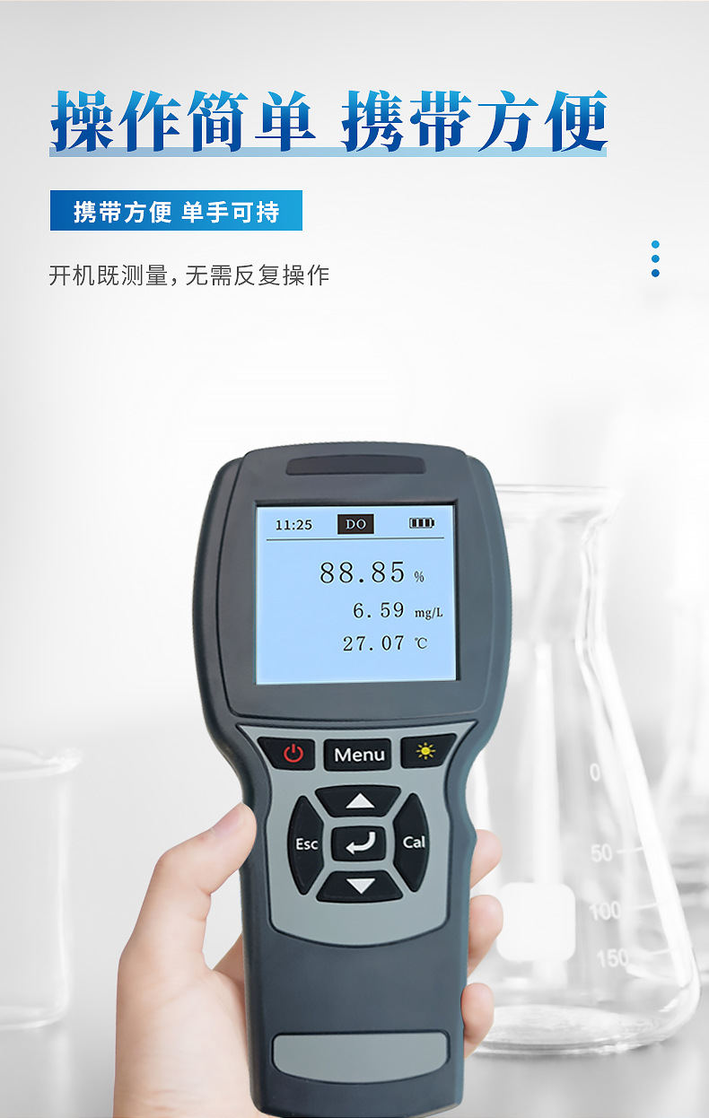 帶背光顯示和操作鍵盤,功能全面操作簡單,界面簡潔,溶解氧光學(xué)傳感器自動(dòng)識別,測量數(shù)據(jù)的讀取、存儲,傳感器校準(zhǔn)等功能,并且可以 USB 數(shù)據(jù)導(dǎo)出,實(shí)現(xiàn)更多**功能。追求高性價(jià)比是我們一貫的追求。