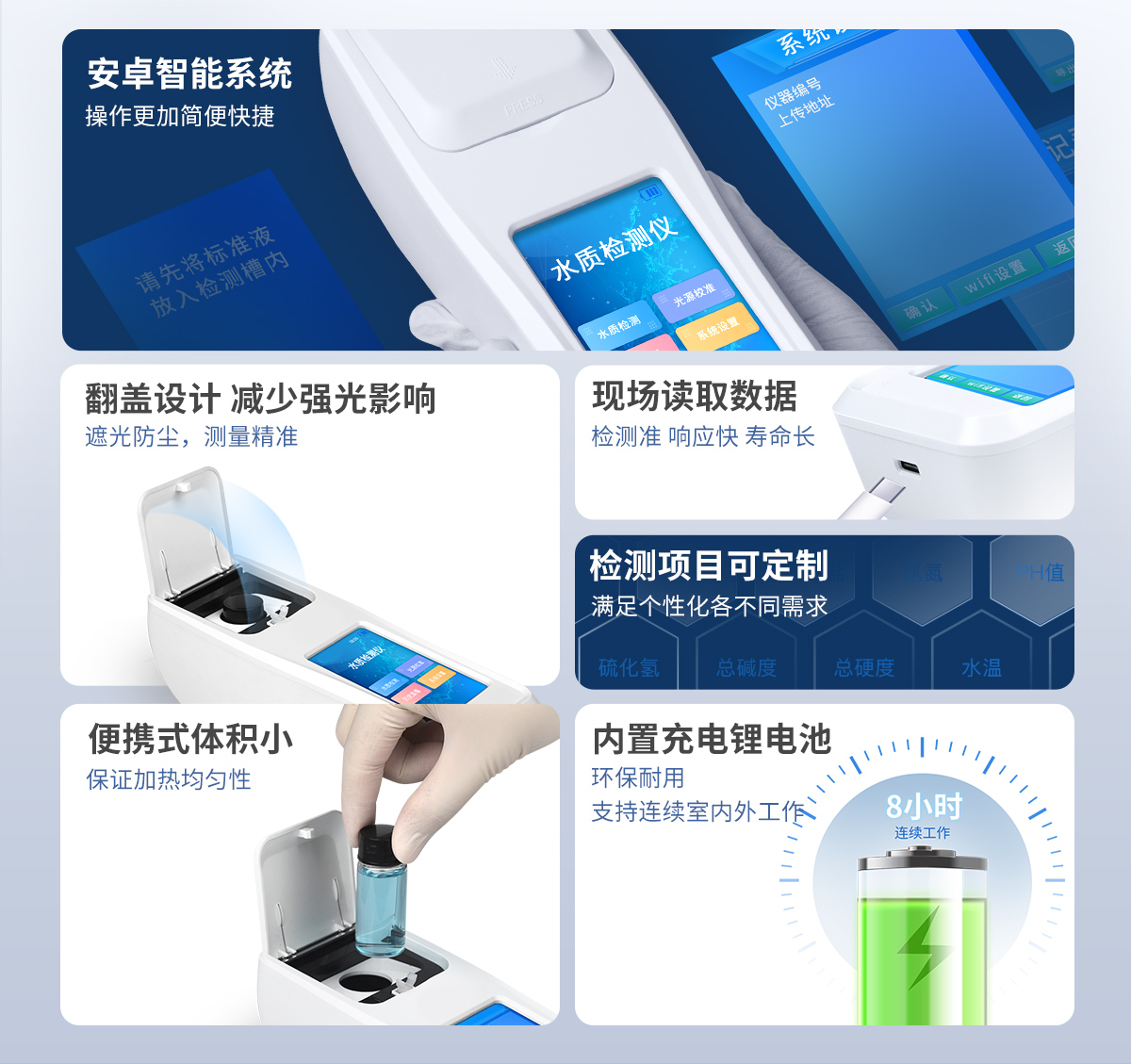 ⑥便攜式體積小,重量輕,方便戶外檢測;