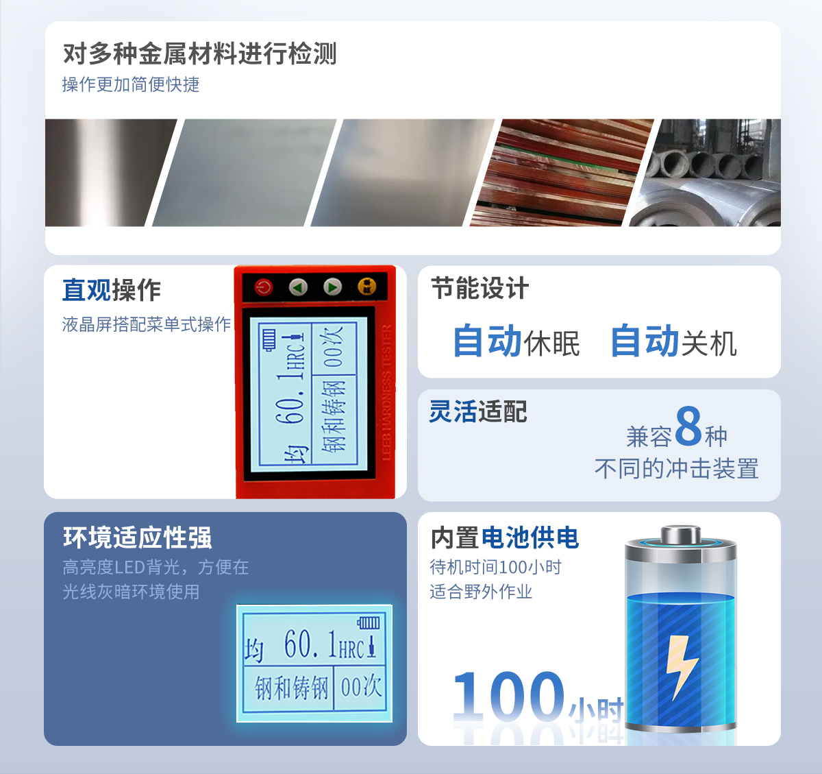 ● 依據里氏硬度測量原理,可以對多種金屬材料進行檢測,測值準確穩定;
