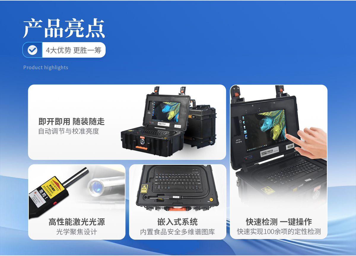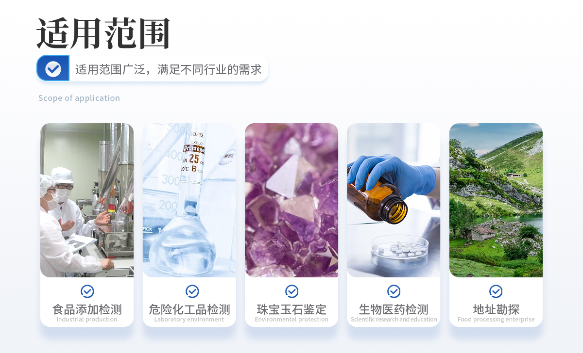食品違禁添加物、色素添加、農獸藥殘留檢測 爆炸物、危險化工品、易燃易爆品檢測 珠寶玉石鑒定、文物鑒別 生物醫藥檢測、材料表征、地址勘探等 其他各類訂制應用