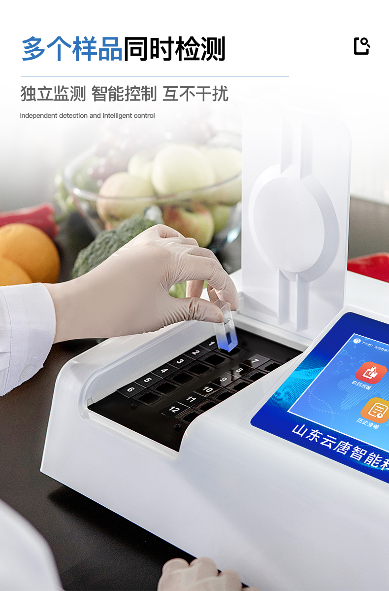 | 安卓智能操作系統,采用更加**和人性化操作,儀器具有網線連接、wifi聯網上傳、GPRS無線遠傳功能,快速上傳數據。 | 智能化程度高,儀器具有自檢功能:具有開機自檢和調零功能,具有自動檢測重復性功能。 | 檢測通道:≥12個檢測通道,可以同時測試多個樣品,每個樣品由程序控制分別獨立工作,不會互相干擾。 | 顯示方式:≥8英寸液晶觸摸屏顯示,人性化中文操作界面,讀數直觀、簡單。 | 配備新一代嵌入式熱敏打印機,可選擇手動打印或者自動打印,檢測完成可自動打印檢測報告和二維碼。 | 光源采用進口超高亮發光二極管,高精度、穩定性強、光源可控、可以關掉不使用的光源,功耗更低。 | 采用USB2.0接口設計,方便數據的存貯和移動,并可隨時與計算機直接相連,并且可用計算機控制儀器。實現數據查詢、瀏覽、分析、統計、打印等。 | 儀器帶有監管平臺。數據可局域網和互聯網數據上傳,檢測結果直接傳至食品安全監管平臺。進行區域食品安全監管及大數據分析處理,檢測區域食品安全長短期動態,達到食品安全問題預估、預警 | 一體化便攜式快檢設備,滿足現場及流動檢測使用需求,能夠在同一軟件下實現所有檢測項目的檢測,并可通過同一窗口直觀顯示檢測結果。 | 儀器具有多品類多種類樣品菜單庫,可靈活選擇檢測樣品,不同的檢測通道可同時檢測不同的樣品項目。也可在儀器上直接編輯錄入樣品名稱、檢測指標、送檢單位等信息并保存進樣品數據庫。 | 樣品處理簡單省力,整體操作快速、安全、便捷。 | 儀器具有自身保護功能,可設置用戶名及密碼,防止非工作人員操作等。 | 高靈敏度,高檢測精度,高重復性精度,掃描式高精度光學傳感器。 | 儀器具有重新校準、鎖定、恢復出廠設置功能。 | 支持U盤存儲。 結果判定線可修改,對照值標定值可保存,斷電不丟失數據。 |