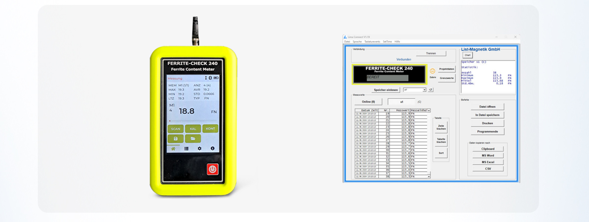 儀器可以與Windows PC進行通信,使用Lima Connect應用程序,測量結果可以進行統計評估并以圖形方式顯示,應用程序是免費的。