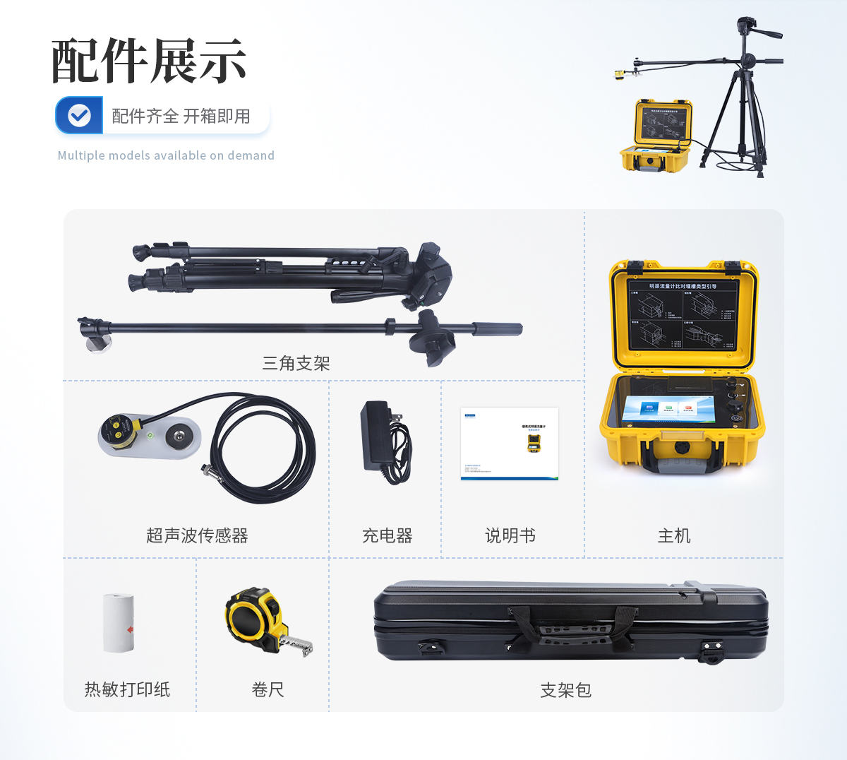 主機(jī)、傳感器探頭、三腳架、 防護(hù)包 、充電器、嵌入式打印機(jī)