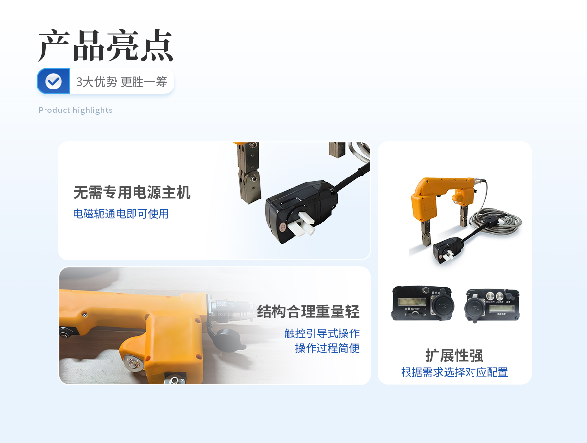 | 1、 無(wú)需專(zhuān)用電源主機(jī),電磁軛通電即可使用; | 2、 體積小巧,重量輕; | 3、 開(kāi)模制作,結(jié)構(gòu)合理,手感舒適; | 4、 配專(zhuān)用儀器箱,電源配專(zhuān)用工作腰包 | 5、 逆變交流鋰電池可滿(mǎn)足不方便拖電源線(xiàn),且需要采用交流磁化的的場(chǎng)所使用。 |