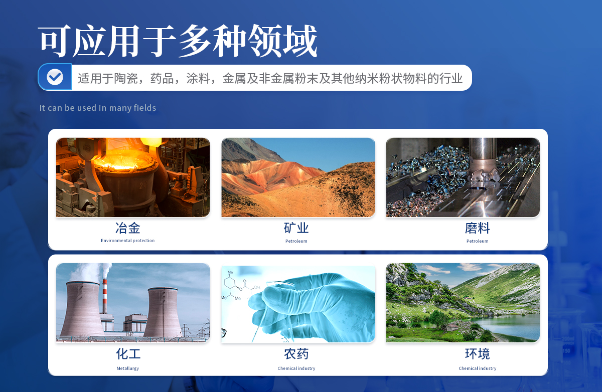 YT-JLGS-2000廣泛應用于水泥、陶瓷、藥品、乳液、涂料、染料、顏料、填料、化工產品、催化劑、鉆井泥漿、磨料、潤滑劑、煤粉、泥砂、粉塵、細胞、細菌、食品、添加劑、農藥、炸藥、石墨、感光材料、燃料、墨汁、金屬與非金屬粉末、碳酸鈣、高嶺土、水煤漿及其他粉狀物料。