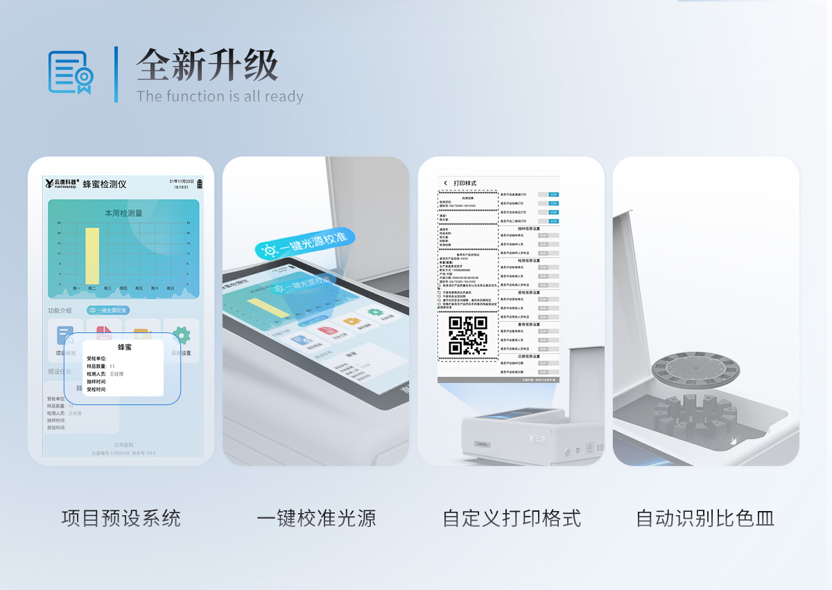 | 儀器采用手提式一體化系統(tǒng)檢測技術(shù),將分光光度模塊、膠體金檢測模塊、新型農(nóng)殘檢測模塊、數(shù)字化管理模塊、無線通訊模塊高度集成于一體,支持檢測200種食品安全檢測項目,同時預(yù)留升級檢測方法。 | 儀器檢測模塊標(biāo)準(zhǔn)化、智能化,檢測項目可隨意自由組合。檢測箱體內(nèi)置多個標(biāo)準(zhǔn)檢測單元,檢測模塊可以調(diào)整配置。 | 顯示屏幕:儀器采用10.1英寸豎向液晶觸摸屏顯,搭配運行安卓智能操作系統(tǒng),主控芯片采用ARM Cortex-A7,RK3288/4核處理器,主頻1.88Ghz,操作方便,性能更強。 | 檢測通道:≥12通道;采用精密旋轉(zhuǎn)比色池設(shè)計,使用同芯片同光源校準(zhǔn)精度,解決不同光源之間的誤差值,更加準(zhǔn)確**。(1-12通道間誤差0.1%,***:**202022821055.2) | 儀器光源:高精度進口四波長冷光源,每個通道均配置 410、520、590、630nm 波長光源,標(biāo)配**的光路切換裝置,專利光路切換功能可實現(xiàn)64波長,并且所有檢測項目可實現(xiàn)所有通道同時檢測。 | 設(shè)備可一鍵校準(zhǔn),自動保存校準(zhǔn)數(shù)據(jù),自動對比校驗,得到精準(zhǔn)光源,采用Android SP存儲數(shù)據(jù),光源數(shù)據(jù)永不丟失,方便每一次使用。 | 通訊接口:配備無線通信模塊、4G(APN)通訊模塊、藍牙傳輸,同時具有雙USB接口以及RJ45網(wǎng)線接口,可以多方式實現(xiàn)數(shù)據(jù)保存及數(shù)據(jù)傳輸 | 存儲方式:支持U盤存儲,標(biāo)準(zhǔn)USB接口,免驅(qū)動安裝。檢測結(jié)果存儲容量20萬條以上,可生成Excel表格進行拷貝,并具有登錄保護功能。 | 智能化操作系統(tǒng): | 1)操作系統(tǒng):儀器可在同一檢測界面自動對應(yīng)相關(guān)檢測通道,一次性選擇1-12個樣品名稱,無需退出界面,節(jié)省操作時間。并可以對每個通道屬性和樣品信息單獨進行編輯,例如送檢單位、人員,檢測人員等,打印時勾選打印顯示。 | 2)數(shù)據(jù)集成系統(tǒng):設(shè)備首頁自動匯總分析檢測數(shù)據(jù),包含:周檢測數(shù)據(jù)、月檢測數(shù)據(jù),全部檢測總數(shù)量,均包含檢測總數(shù),合格數(shù),不合格數(shù),以及相關(guān)柱形分析圖,各項檢測數(shù)據(jù)一目了然,無需電腦查詢,更加快捷直觀。 | 3)數(shù)據(jù)庫系統(tǒng):十幾項數(shù)據(jù)庫分類管理儀器:包含項目類型、項目數(shù)據(jù)、檢測數(shù)據(jù)、歷史記錄、國標(biāo)信息、曲線信息、采樣信息、檢測信息、受檢信息、復(fù)核信息、圖表信息、光源校準(zhǔn)信息、打印樣式信息、樣品庫信息等等,數(shù)據(jù)庫之間互相協(xié)調(diào)聯(lián)動保證數(shù)據(jù)的真實完整性。同時產(chǎn)品數(shù)據(jù)庫以及歷史檢測記錄支持一鍵檢索功能。 | 4)限量規(guī)判系統(tǒng):具有限量查詢、添加物質(zhì)合規(guī)判定系統(tǒng)。檢測出結(jié)果后,系統(tǒng)自動調(diào)用系統(tǒng)數(shù)據(jù)庫中相關(guān)國標(biāo)進行比對判定,客觀顯示判定結(jié)果是否合格。 | 5)項目預(yù)設(shè)系統(tǒng):儀器具有任務(wù)預(yù)設(shè)模塊,一鍵提前預(yù)設(shè),給出方便快捷的新檢測方案,每一個任務(wù)分別可以設(shè)置不同的樣品、批次、編號、來源、備注、抽樣信息、檢測信息、受檢信息、復(fù)核信息等更多信息。樣品送檢時一鍵調(diào)取保存信息,并可多次調(diào)取,大大提高檢測效率。 | 6)數(shù)據(jù)監(jiān)管系統(tǒng):同步對接監(jiān)管平臺,數(shù)據(jù)可局域網(wǎng)和互聯(lián)網(wǎng)數(shù)據(jù)上傳,檢測結(jié)果可選擇直接傳至食品安全監(jiān)管平臺。進行區(qū)域食品安全監(jiān)管及大數(shù)據(jù)分析處理與數(shù)據(jù)統(tǒng)計,檢測區(qū)域食品安全長短期動態(tài),達到食品安全問題預(yù)估、預(yù)警。 | 7)打印系統(tǒng):內(nèi)置全新打印機,新創(chuàng)自定義打印方式,可按需靈活勾選控制:產(chǎn)品合格證(國家農(nóng)業(yè)部標(biāo)準(zhǔn)要求),二維碼,抽樣信息、檢測信息,受檢信息、復(fù)核信息、抽樣日期、檢測日期等信息的打印。 | 供電模式:儀器交直流兩用,直流12V供電,可連接車載電源,可配6ah大容量充電鋰電池,電量可實時顯示,方便戶外流動測試。 | 膠體金檢測模塊:采用雙通道CMOS成像處理技術(shù)及膠體金免疫層析技術(shù),可同時讀取雙膠體金卡數(shù)據(jù),自動采集、處理分析,將檢測結(jié)果顯示,并可根據(jù)參考限值自動判斷檢測結(jié)果,可檢測常見的獸藥殘留、生物毒素、抗生素、違禁添加物等。 | 1)探測技術(shù):CMOS成像探測; | 2)檢測通道:3通道,可同時讀取3個膠體金卡數(shù)據(jù); | 3)檢測方式:消線法和比色法; | 4)顯示模式:陰性或陽性; | 5)曲線形式:直插式掃描方式,顯示金標(biāo)卡圖像,實時生成、識別CT曲線圖,無需手動調(diào)整,完成檢測后自動退出檢測卡。兼容市場上其他金標(biāo)卡,使用耗材不受限制。 | 儀器加入遠程升級功能,可定向分客戶分儀器更新,開機后自動更新,客戶無需任何操作,即可升級全新項目。做到了無需退換機器即可實現(xiàn)實時遠程升級檢測儀器。 |